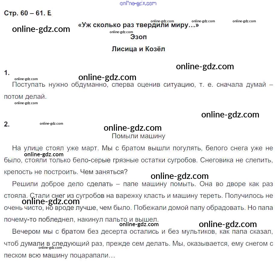 Готовые домашние задания по Литературе за 4 класс Рабочая тетрадь Кубасова Гармония 2019 - Часть 1. Страницы тетради 60