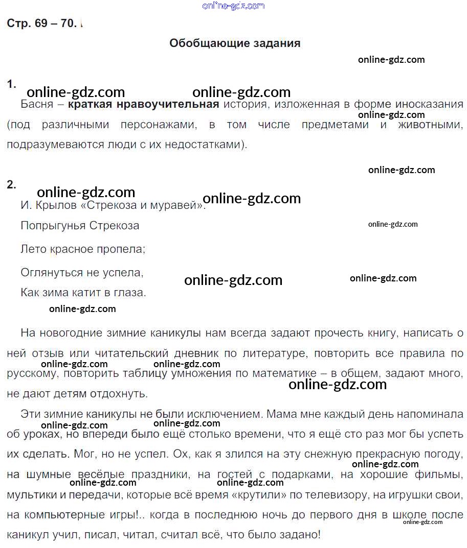 Готовые домашние задания по Литературе за 4 класс Рабочая тетрадь Кубасова Гармония 2019 - Часть 1. Страницы тетради 70