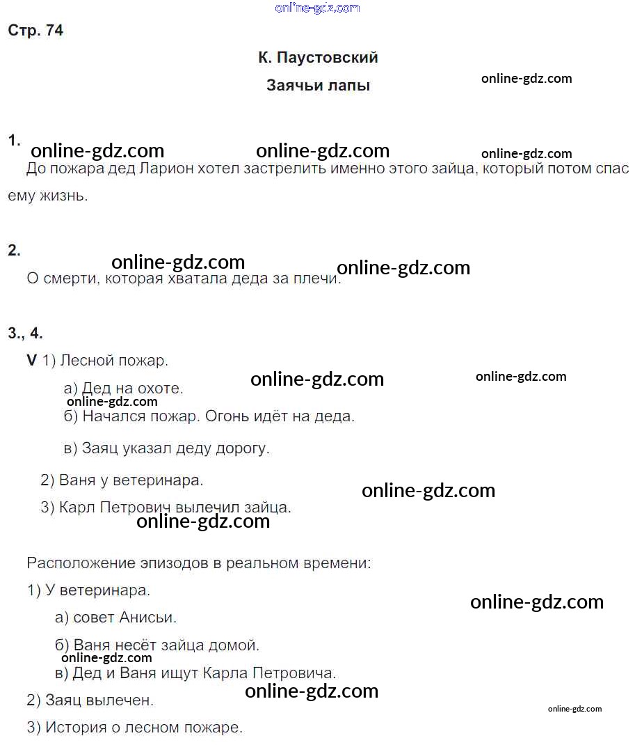 Готовые домашние задания по Литературе за 4 класс Рабочая тетрадь Кубасова Гармония 2019 - Часть 1. Страницы тетради 74