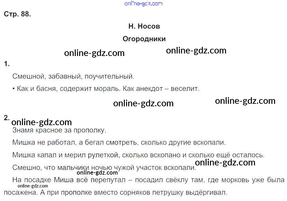 Готовые домашние задания по Литературе за 4 класс Рабочая тетрадь Кубасова Гармония 2019 - Часть 1. Страницы тетради 88