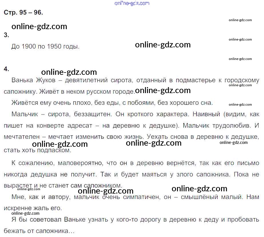 Готовые домашние задания по Литературе за 4 класс Рабочая тетрадь Кубасова Гармония 2019 - Часть 1. Страницы тетради 96
