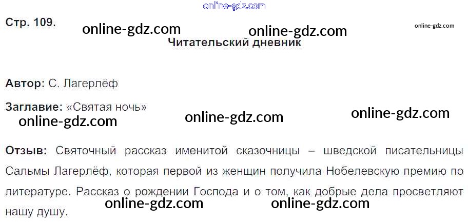 Готовые домашние задания по Литературе за 4 класс Рабочая тетрадь Кубасова Гармония 2019 - Часть 2. Страницы тетради 109