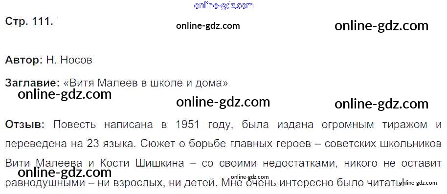 Готовые домашние задания по Литературе за 4 класс Рабочая тетрадь Кубасова Гармония 2019 - Часть 2. Страницы тетради 111