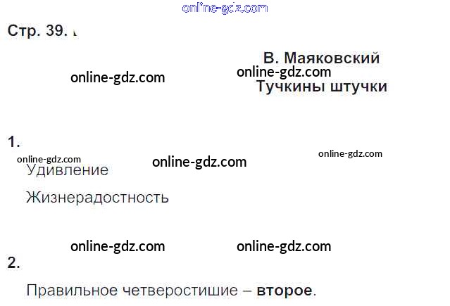 Готовые домашние задания по Литературе за 4 класс Рабочая тетрадь Кубасова Гармония 2019 - Часть 2. Страницы тетради 39