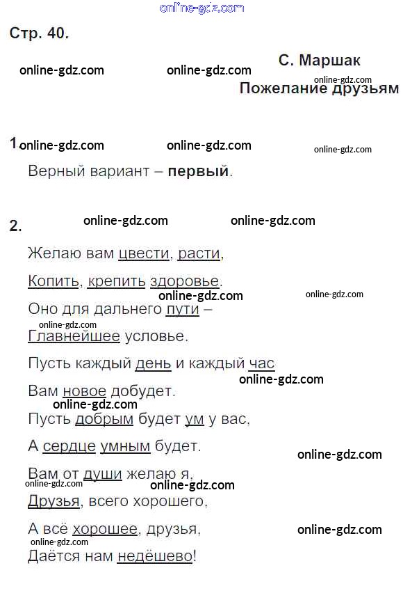 Готовые домашние задания по Литературе за 4 класс Рабочая тетрадь Кубасова Гармония 2019 - Часть 2. Страницы тетради 40