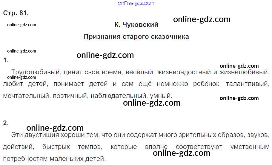 Готовые домашние задания по Литературе за 4 класс Рабочая тетрадь Кубасова Гармония 2019 - Часть 2. Страницы тетради 81