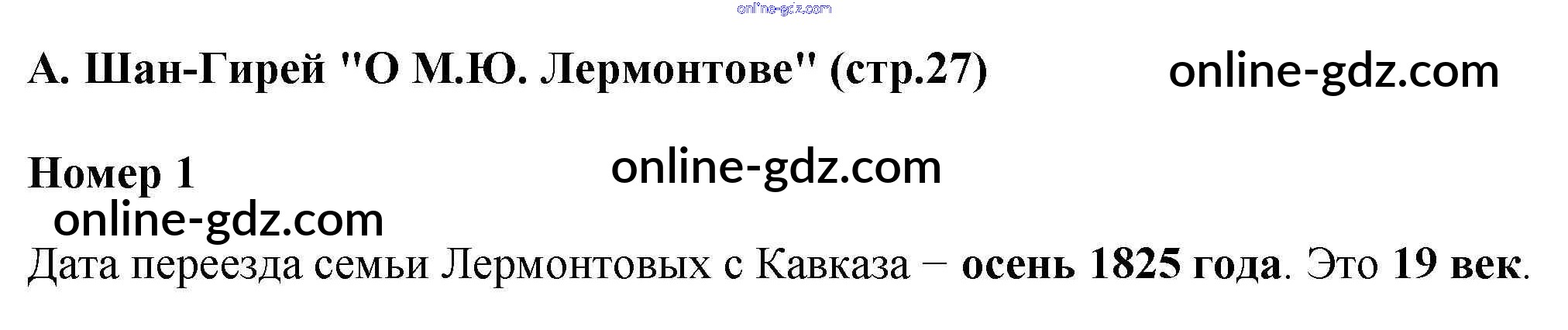 Готовые домашние задания по Литературе за 4 класс Рабочая тетрадь Тихомирова УМК 2020 - А. Шан-Гирей "О М.Ю. Лермонтове" Чудесный мир классики 1