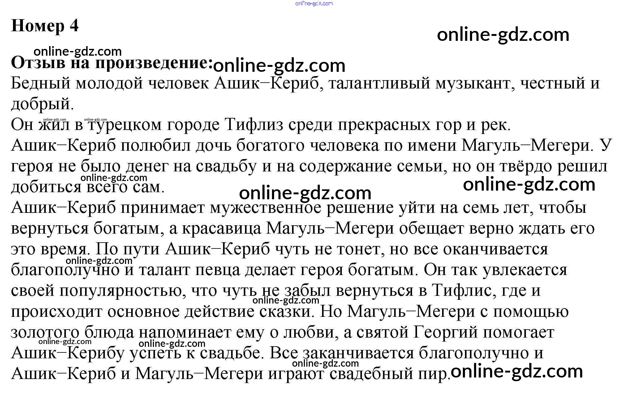 Готовые домашние задания по Литературе за 4 класс Рабочая тетрадь Тихомирова УМК 2020 - "Ашик-Кериб" Чудесный мир классики 4