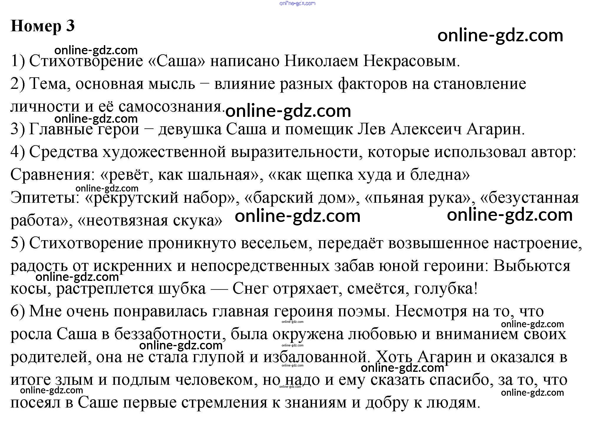 Готовые домашние задания по Литературе за 4 класс Рабочая тетрадь Тихомирова УМК 2020 - Н.А. Некрасов "Саша" Поэтическая тетрадь 3