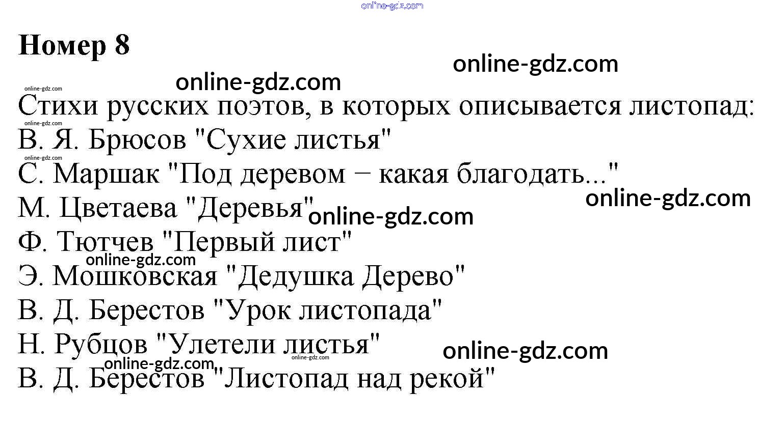 Готовые домашние задания по Литературе за 4 класс Рабочая тетрадь Тихомирова УМК 2020 - И.А. Бунин "Листопад" Поэтическая тетрадь 8