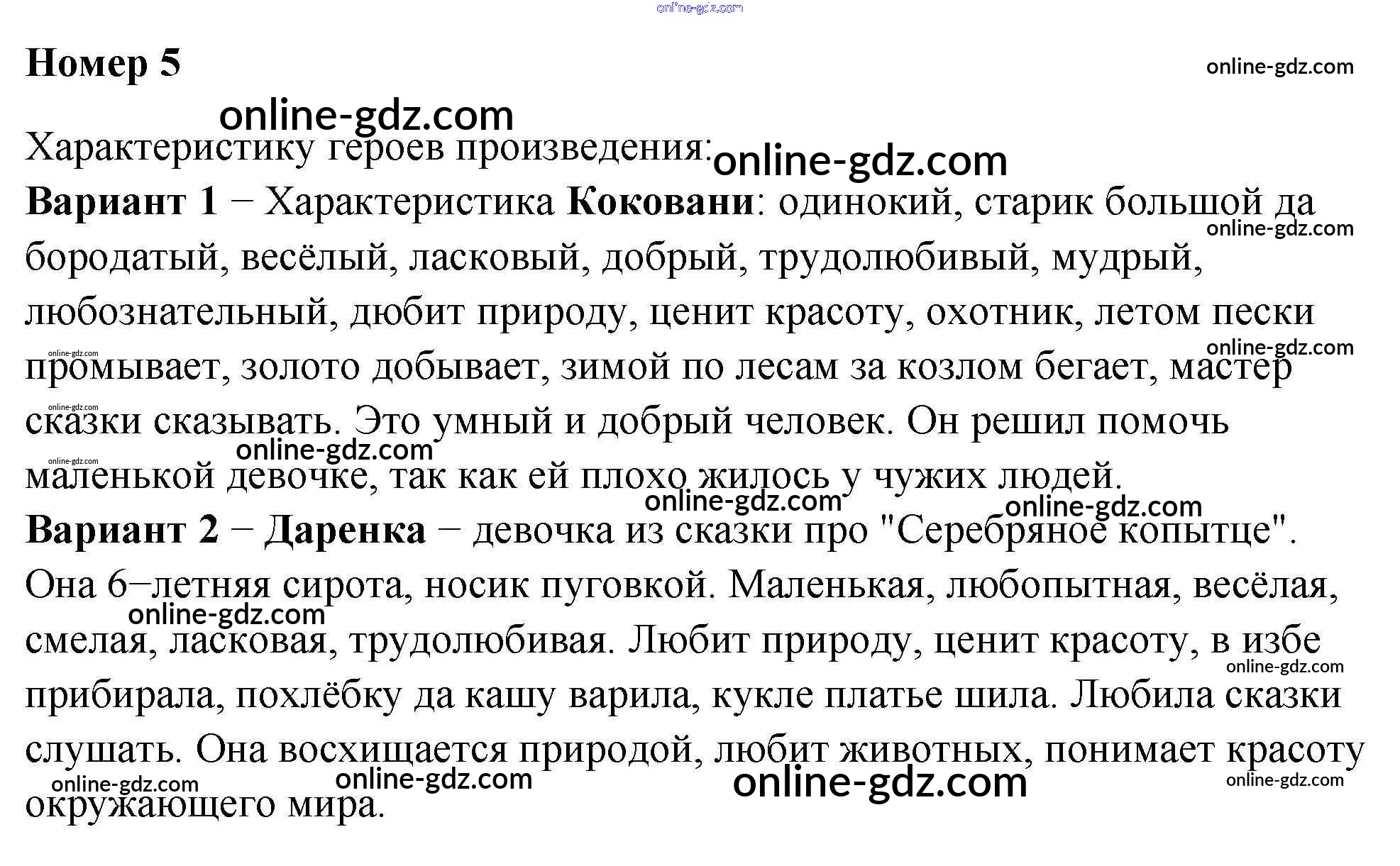 Готовые домашние задания по Литературе за 4 класс Рабочая тетрадь Тихомирова УМК 2020 - П.П. Бажов "Серебряное копытце" Литературные сказки 5