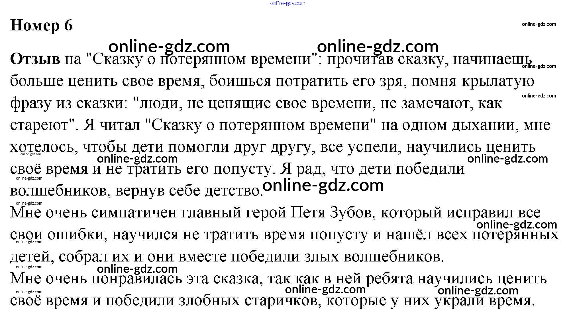 Готовые домашние задания по Литературе за 4 класс Рабочая тетрадь Тихомирова УМК 2020 - Е.Л. Шварц "Сказка о потерянном времени" Делу время, потехе час 6