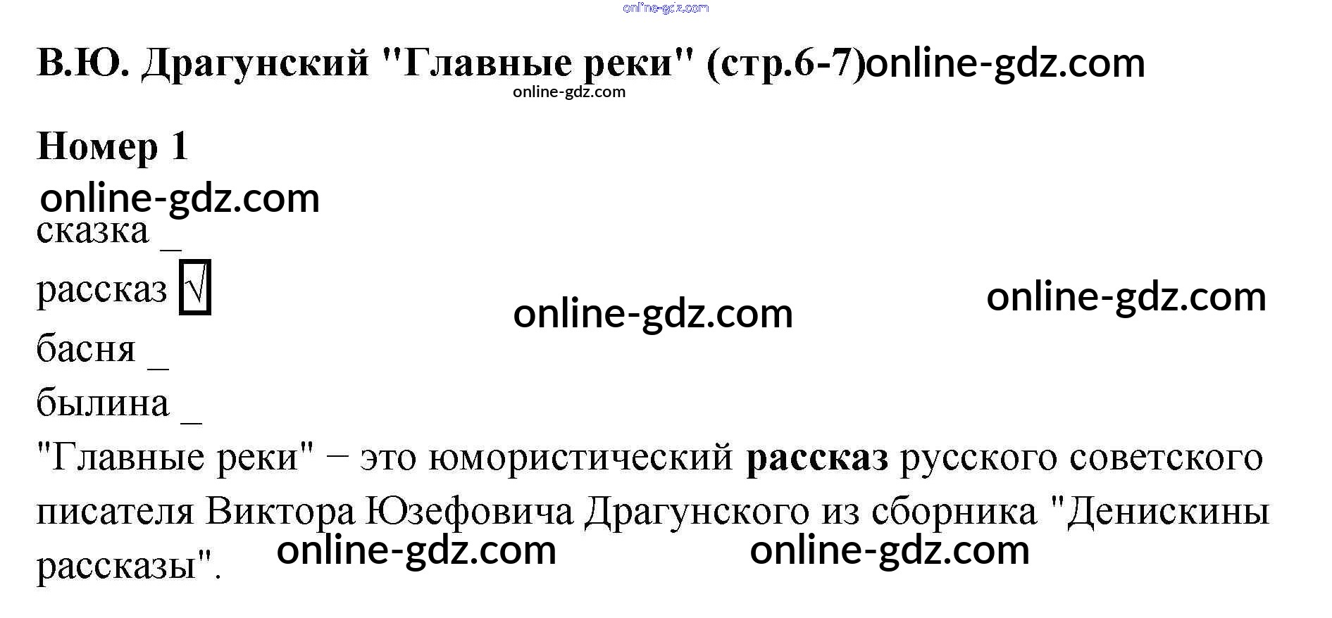Готовые домашние задания по Литературе за 4 класс Рабочая тетрадь Тихомирова УМК 2020 - В.Ю. Драгунский "Главные реки" Делу время, потехе час 1