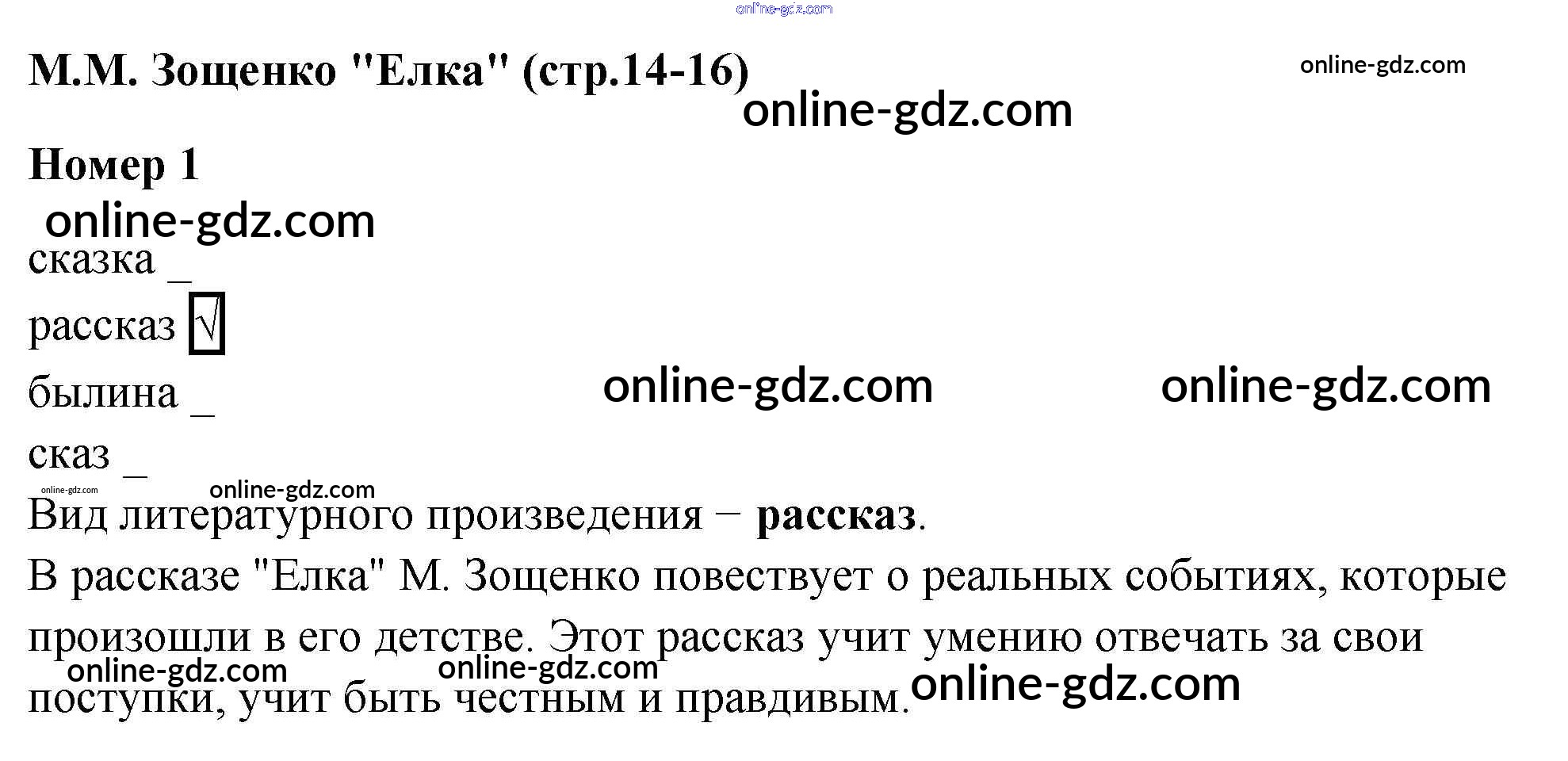 Готовые домашние задания по Литературе за 4 класс Рабочая тетрадь Тихомирова УМК 2020 - М.М. Зощенко "Елка" Страна детства 1