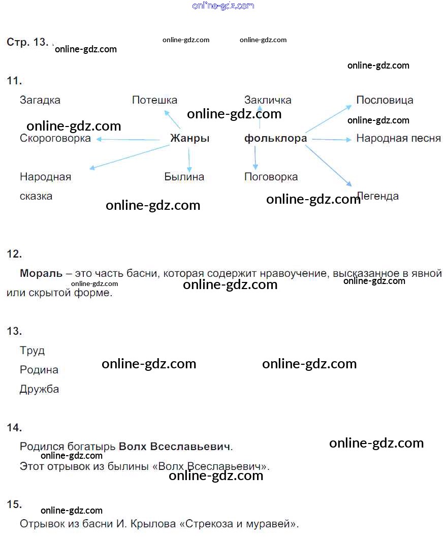 Готовые домашние задания по Литературе за 4 класс Тетрадь для контрольных работ Ефросинина УМК 2019 - Часть 1. Страницы тетради 13