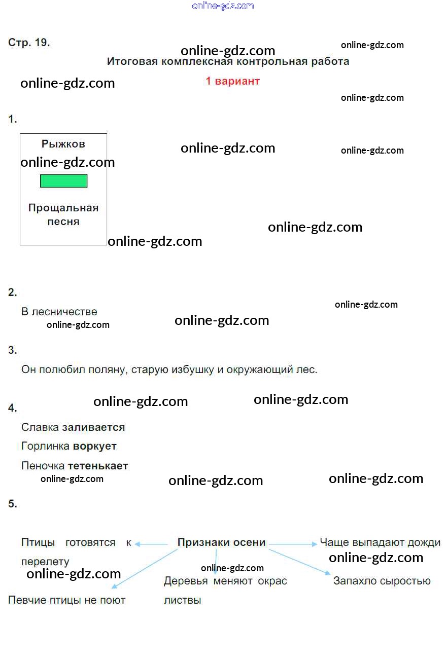 Готовые домашние задания по Литературе за 4 класс Тетрадь для контрольных работ Ефросинина УМК 2019 - Часть 1. Страницы тетради 19
