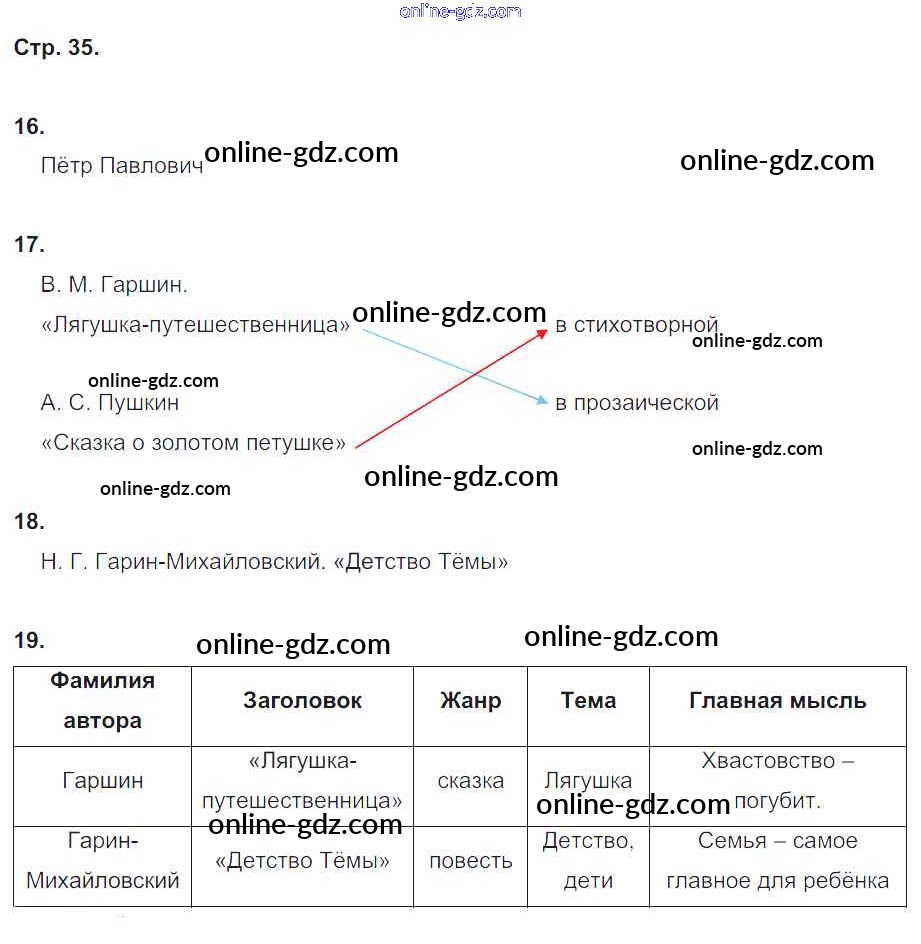 Готовые домашние задания по Литературе за 4 класс Тетрадь для контрольных работ Ефросинина УМК 2019 - Часть 1. Страницы тетради 35