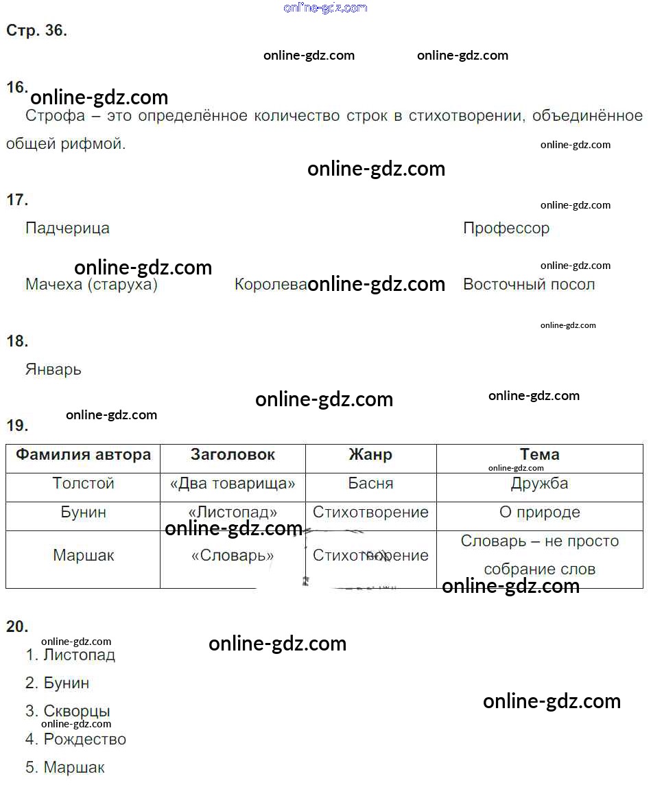 Готовые домашние задания по Литературе за 4 класс Тетрадь для контрольных работ Ефросинина УМК 2019 - Часть 1. Страницы тетради 36