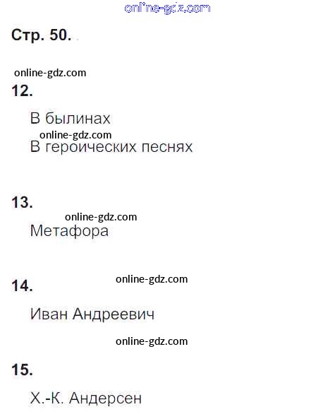 Готовые домашние задания по Литературе за 4 класс Тетрадь для контрольных работ Ефросинина УМК 2019 - Часть 1. Страницы тетради 50