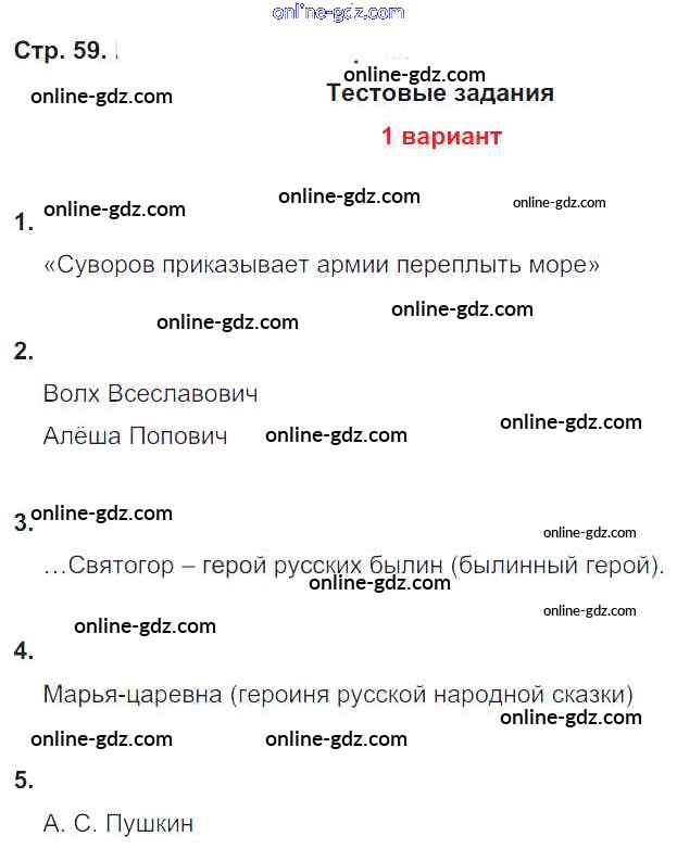 Готовые домашние задания по Литературе за 4 класс Тетрадь для контрольных работ Ефросинина УМК 2019 - Часть 1. Страницы тетради 59