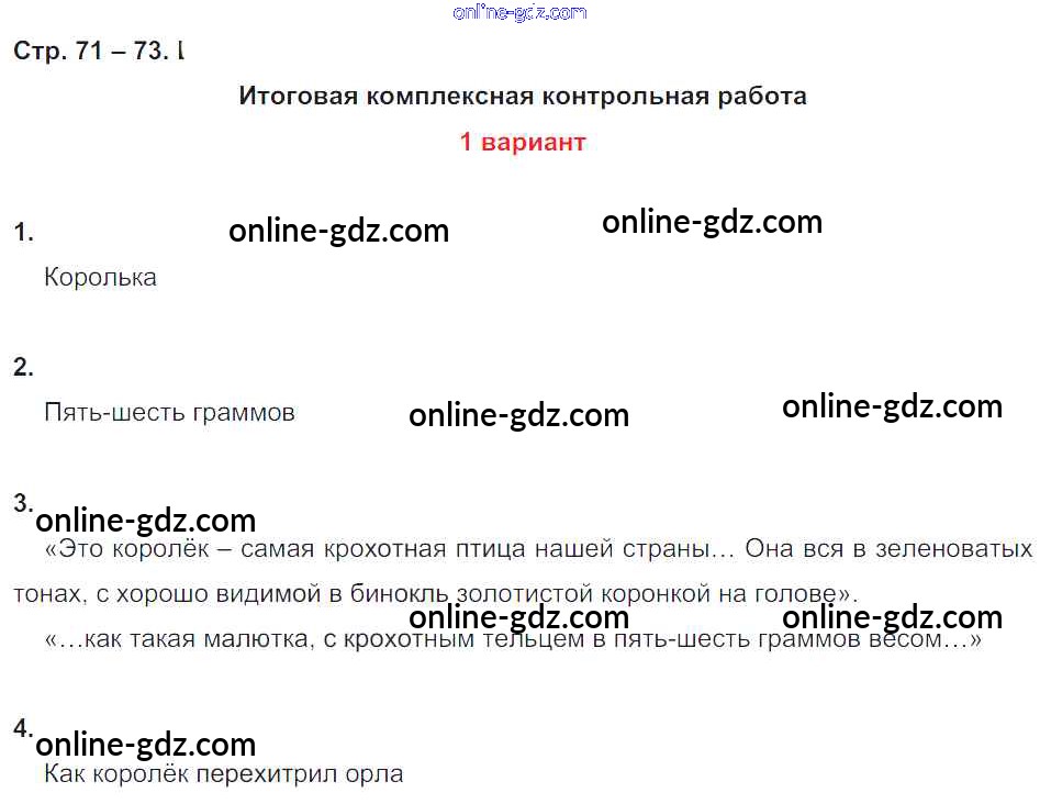 Готовые домашние задания по Литературе за 4 класс Тетрадь для контрольных работ Ефросинина УМК 2019 - Часть 1. Страницы тетради 73