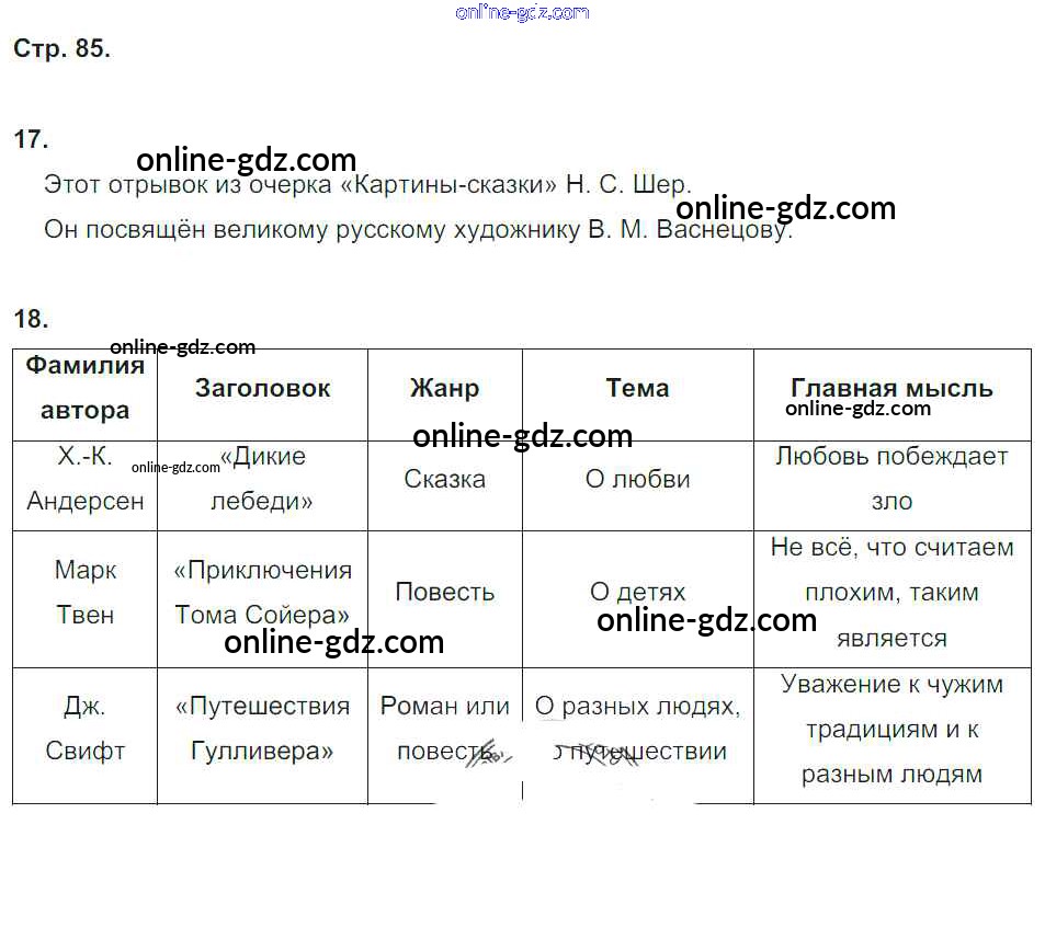Готовые домашние задания по Литературе за 4 класс Тетрадь для контрольных работ Ефросинина УМК 2019 - Часть 1. Страницы тетради 85