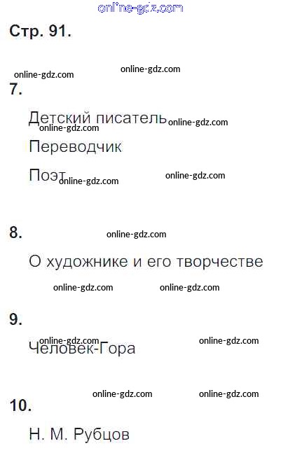 Готовые домашние задания по Литературе за 4 класс Тетрадь для контрольных работ Ефросинина УМК 2019 - Часть 1. Страницы тетради 91