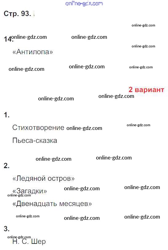 Готовые домашние задания по Литературе за 4 класс Тетрадь для контрольных работ Ефросинина УМК 2019 - Часть 1. Страницы тетради 93