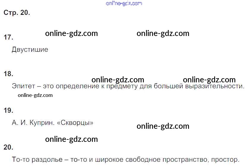Готовые домашние задания по Литературе за 4 класс Тетрадь для контрольных работ Ефросинина УМК 2019 - Часть 2. Страницы тетради 20