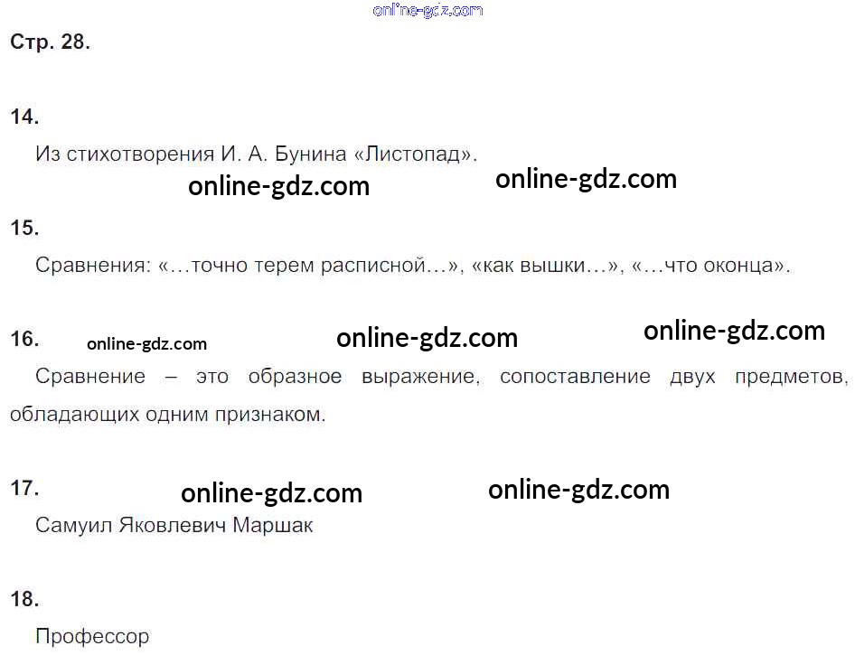Готовые домашние задания по Литературе за 4 класс Тетрадь для контрольных работ Ефросинина УМК 2019 - Часть 2. Страницы тетради 28