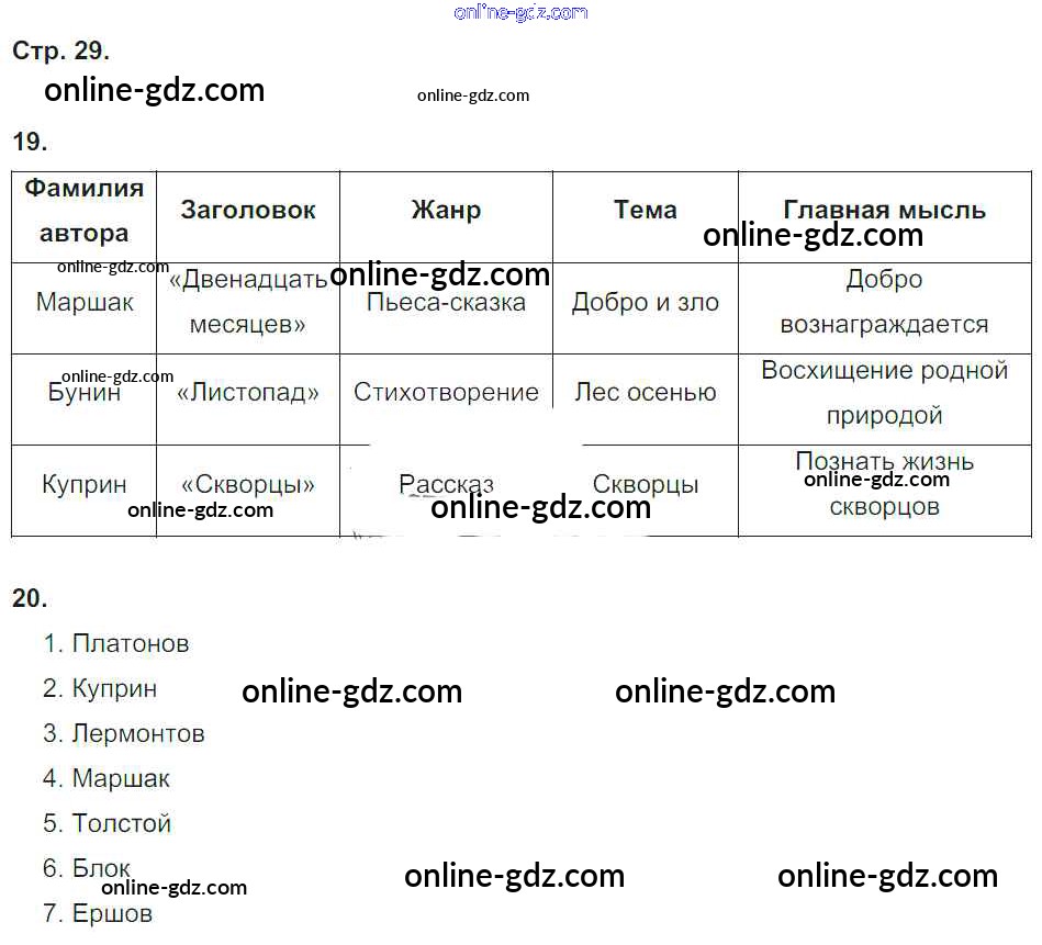 Готовые домашние задания по Литературе за 4 класс Тетрадь для контрольных работ Ефросинина УМК 2019 - Часть 2. Страницы тетради 29