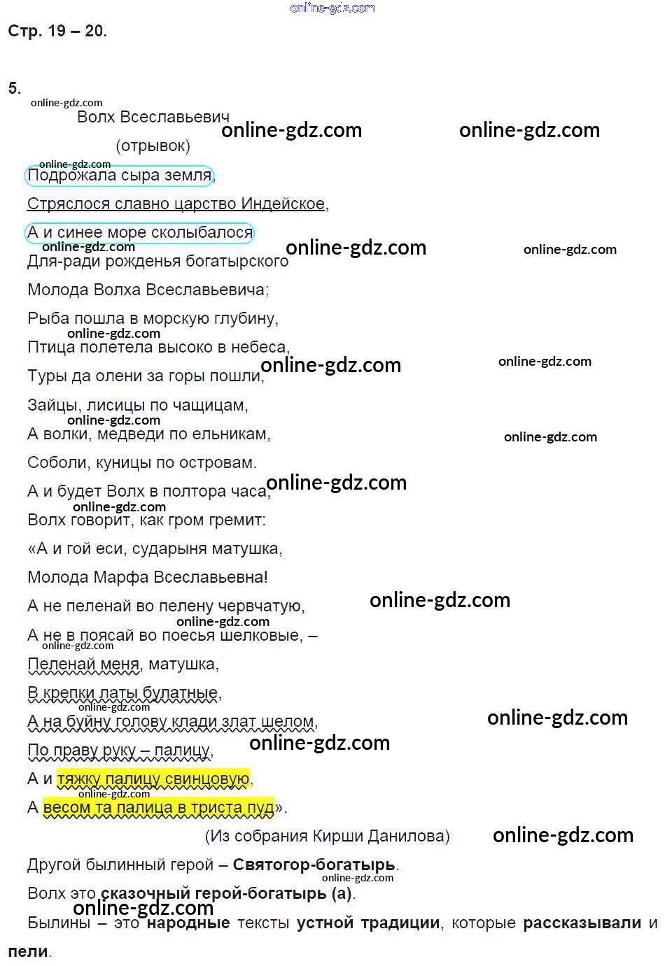 Готовые домашние задания по Литературе за 4 класс Тетрадь для самостоятельной работы Чуракова УМК 2019 - Часть 1. Страницы тетради 20