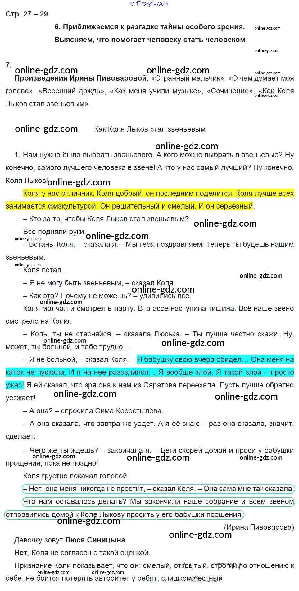 Готовые домашние задания по Литературе за 4 класс Тетрадь для самостоятельной работы Чуракова УМК 2019 - Часть 2. Страницы тетради 27