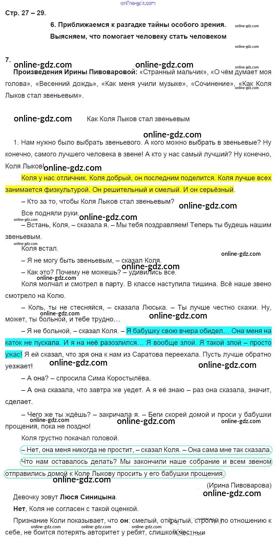 Готовые домашние задания по Литературе за 4 класс Тетрадь для самостоятельной работы Чуракова УМК 2019 - Часть 2. Страницы тетради 29