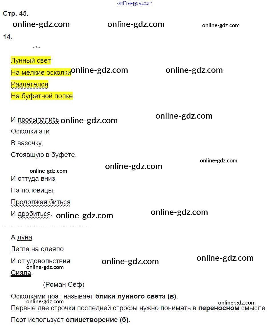 Готовые домашние задания по Литературе за 4 класс Тетрадь для самостоятельной работы Чуракова УМК 2019 - Часть 2. Страницы тетради 45