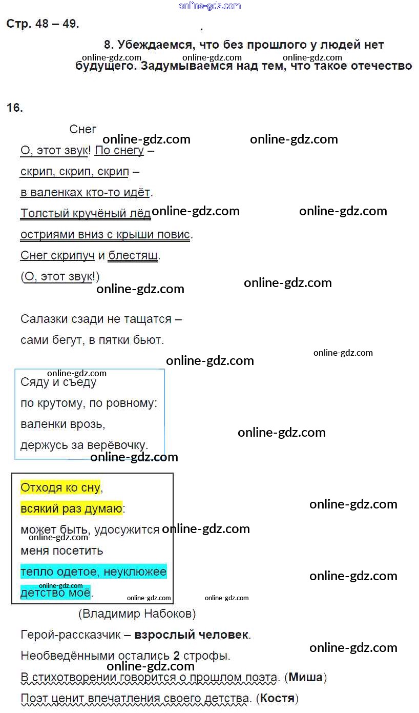 Готовые домашние задания по Литературе за 4 класс Тетрадь для самостоятельной работы Чуракова УМК 2019 - Часть 2. Страницы тетради 49