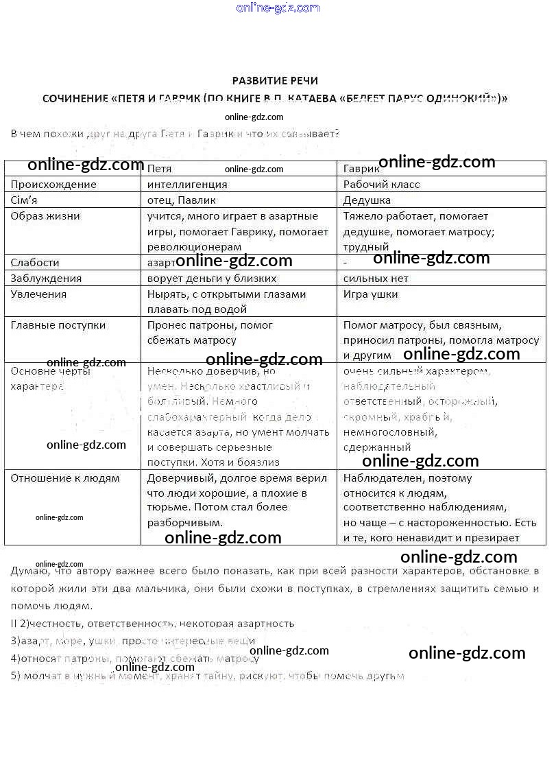 Готовые домашние задания по Литературе за 5 класс Рабочая тетрадь Бунеев, Чиндилова Школа 2100 2014 - Темы Развитие речи. Сочинение Петя и Гаврик (по книге В.П. Катаева Белеет парус одинокий)