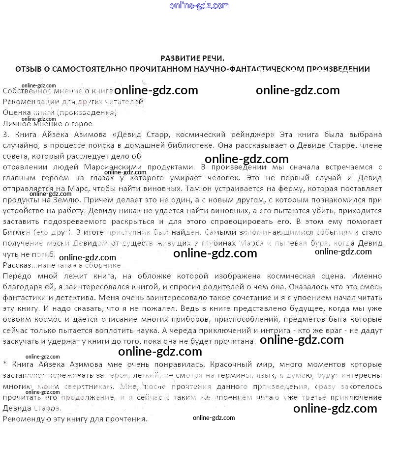 Развитие речи. Отзыв о самостоятельно прочитанном научно-фантастическом произведении