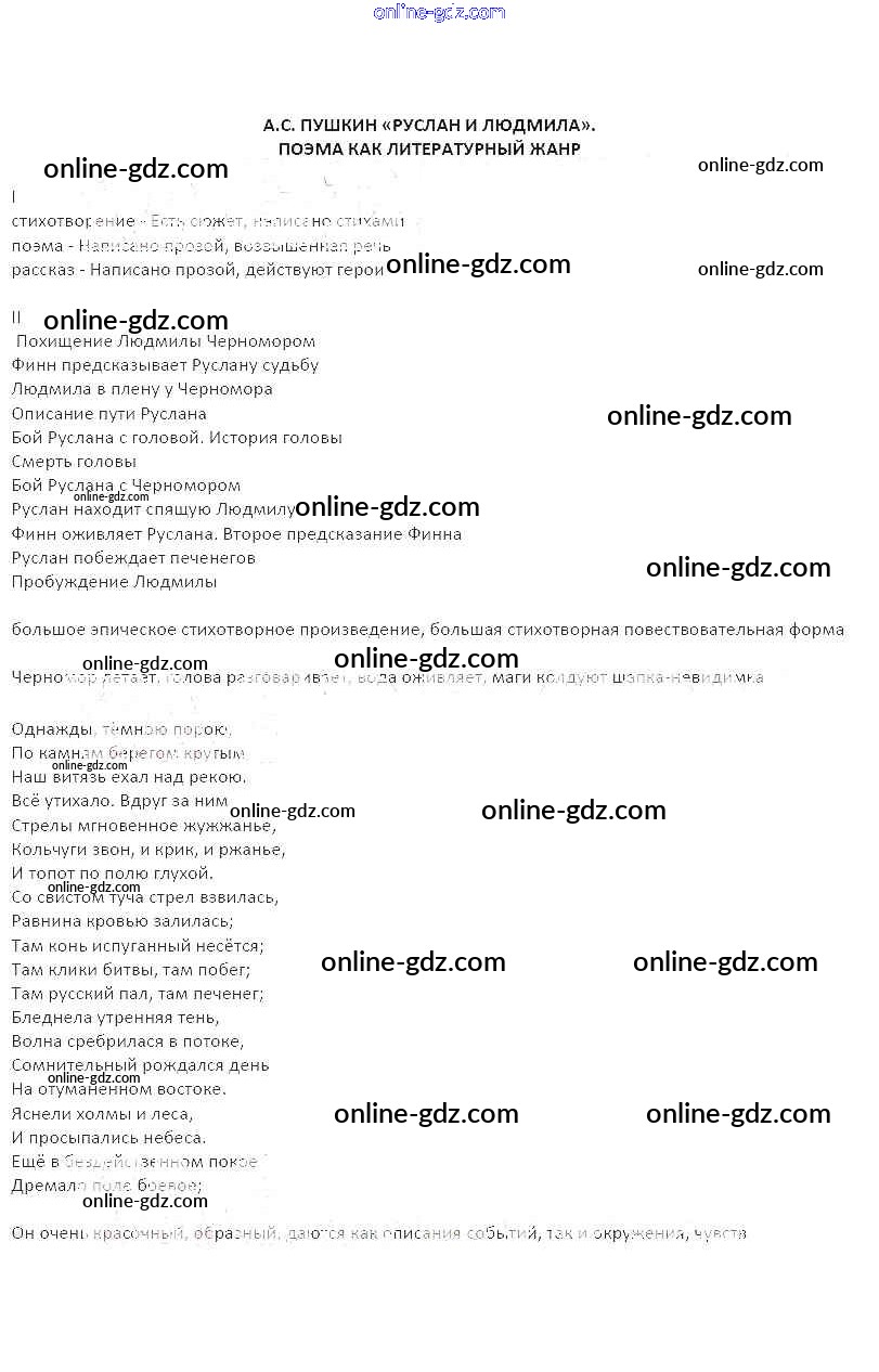 Готовые домашние задания по Литературе за 5 класс Рабочая тетрадь Бунеев, Чиндилова Школа 2100 2014 - Темы А.С. Пушкин. Руслан и Людмила. Поэма как литературный жанр