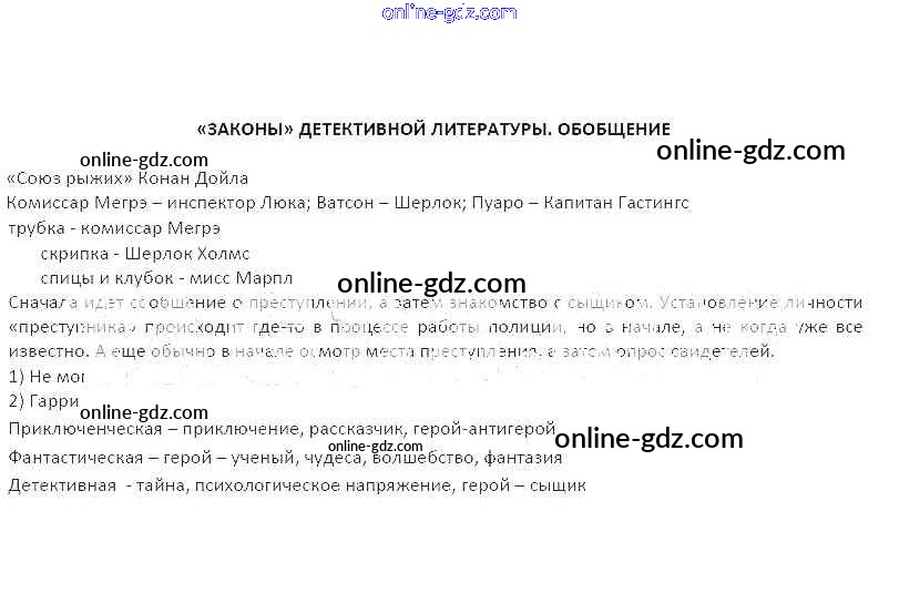 Готовые домашние задания по Литературе за 5 класс Рабочая тетрадь Бунеев, Чиндилова Школа 2100 2014 - Темы Законы детективной литературы. Обобщение