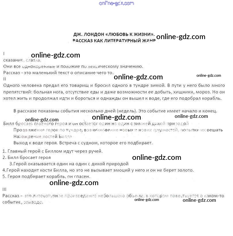 Готовые домашние задания по Литературе за 5 класс Рабочая тетрадь Бунеев, Чиндилова Школа 2100 2014 - Темы Дж. Лондон. Любовь к жизни. Рассказ как литературный жанр
