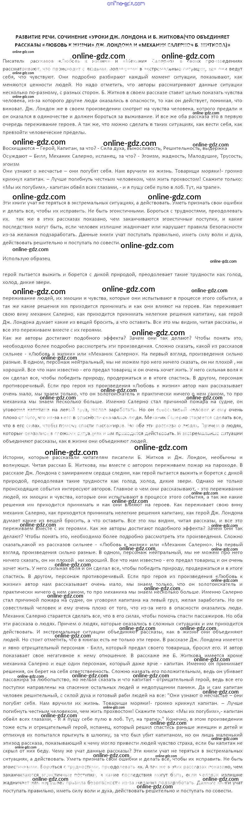 Развитие речи. Уроки Дж. Лондона и Б. Житкова (что объединяет рассказы Любовь к жизни Дж. Лондона и Механик Салерно Б. Житкова)