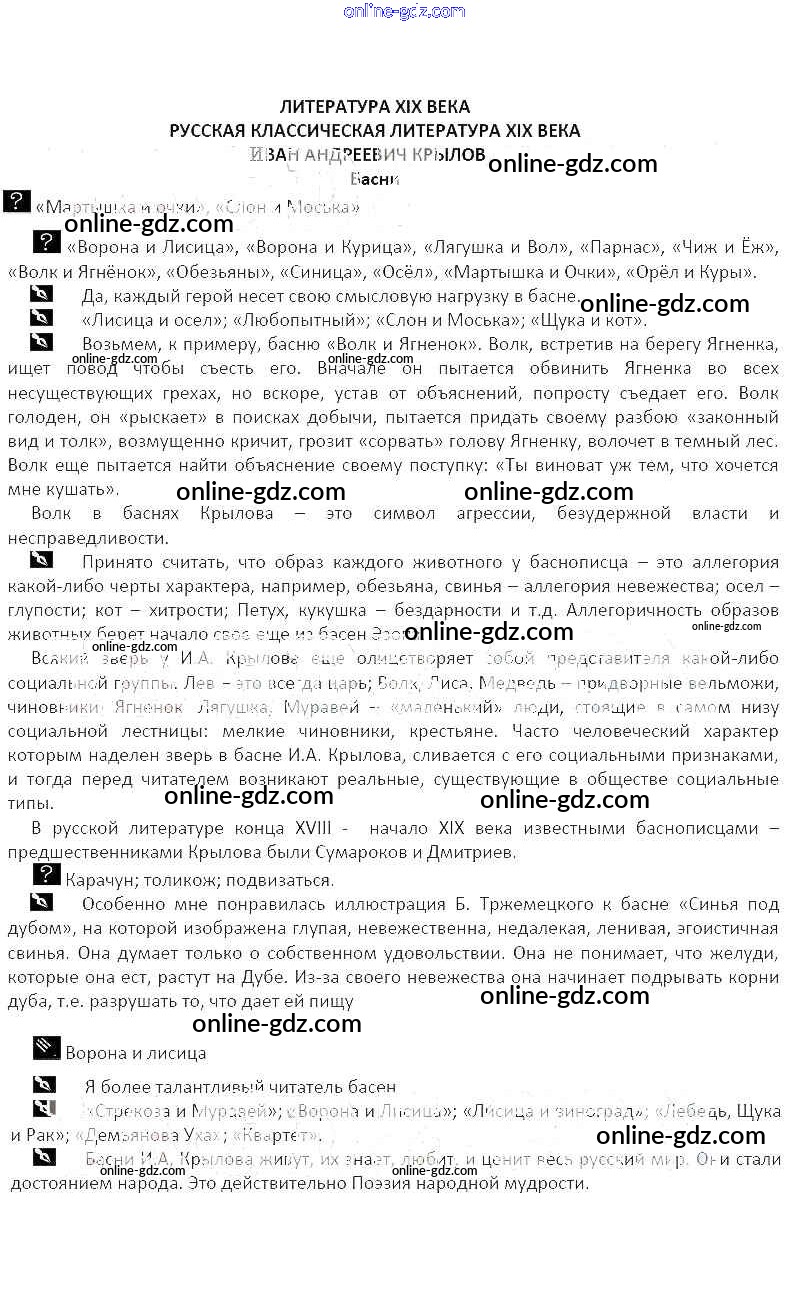Готовые домашние задания по Литературе за 5 класс Рабочая тетрадь Курдюмова Вертикаль 2017 - Часть 1. Темы Иван Андреевич Крылов