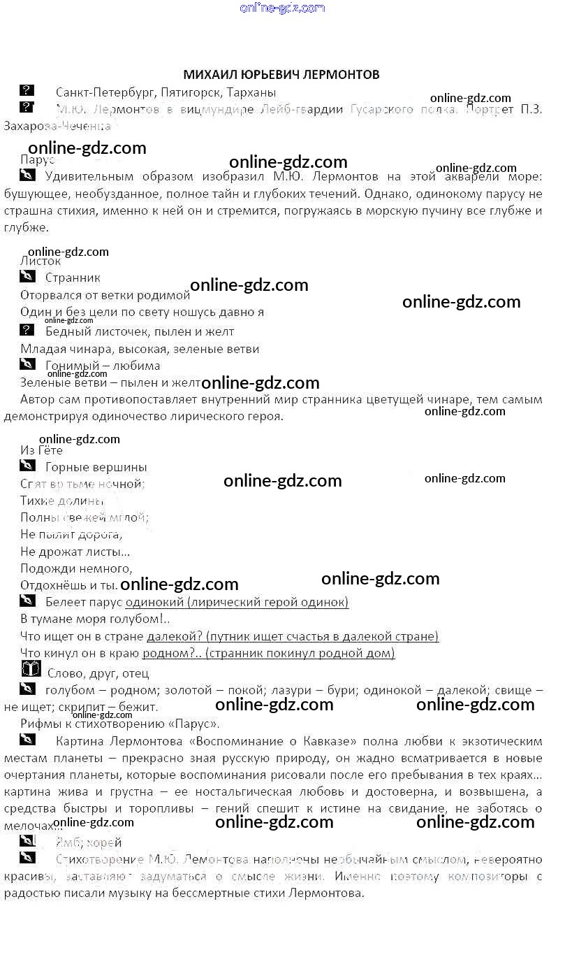 Готовые домашние задания по Литературе за 5 класс Рабочая тетрадь Курдюмова Вертикаль 2017 - Часть 1. Темы Михаил Юрьевич Лермонтов