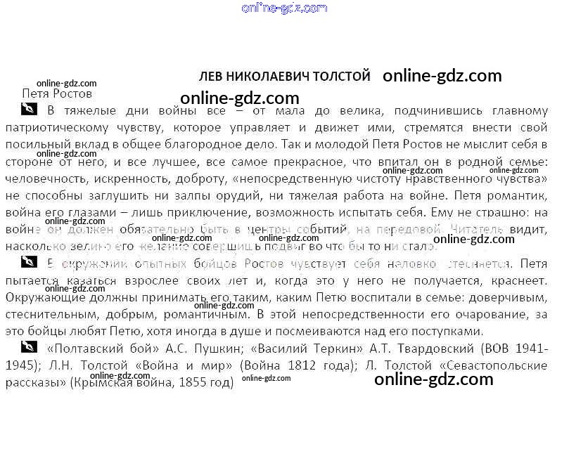 Готовые домашние задания по Литературе за 5 класс Рабочая тетрадь Курдюмова Вертикаль 2017 - Часть 1. Темы Лев Николаевич Толстой. Петя Ростов