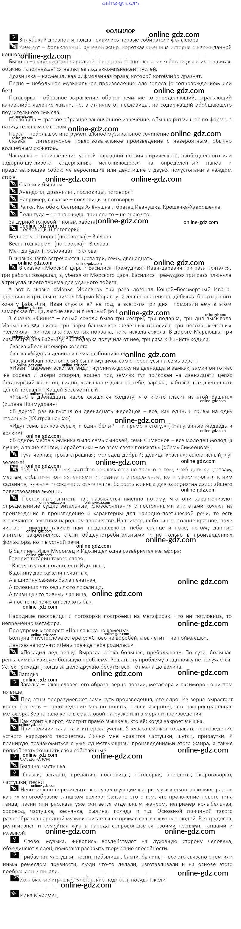 Готовые домашние задания по Литературе за 5 класс Рабочая тетрадь Курдюмова Вертикаль 2017 - Часть 1. Темы Фольклор - устное народное творчество