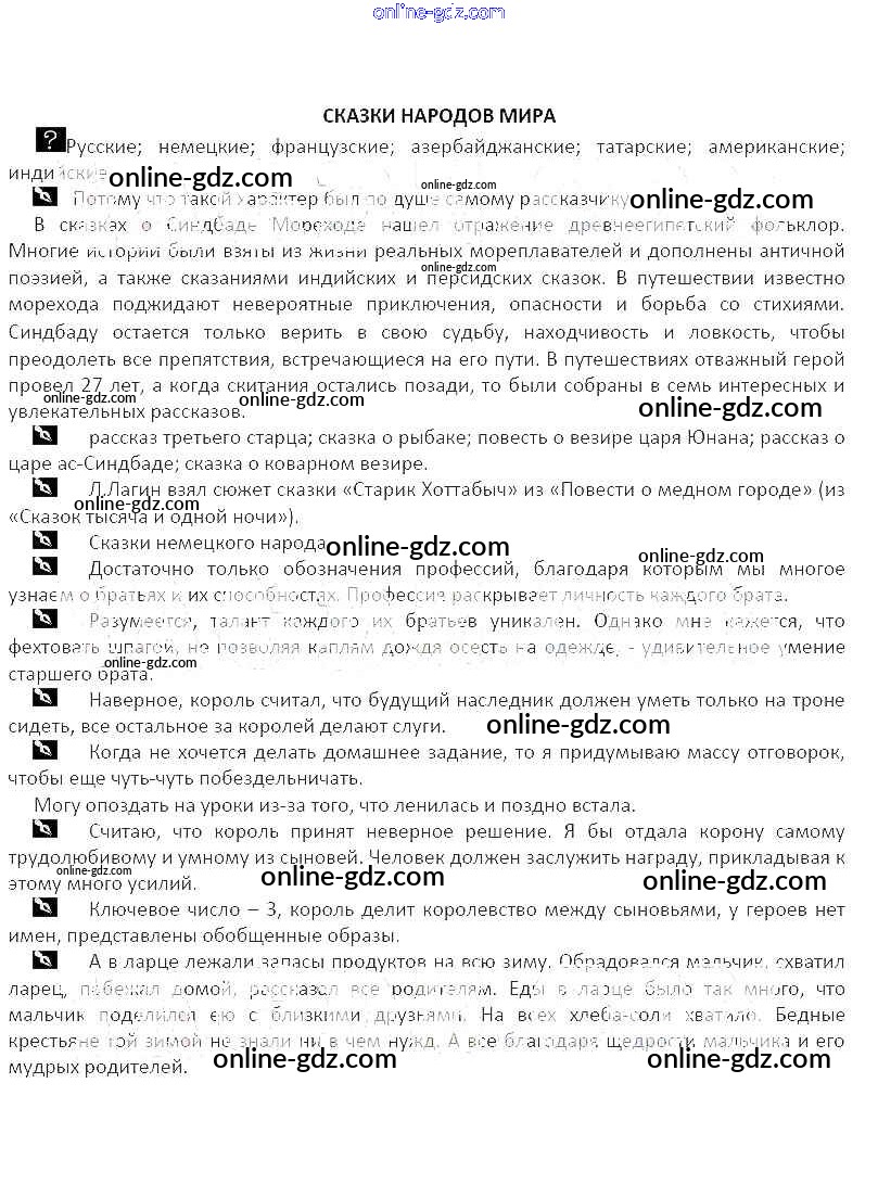 Готовые домашние задания по Литературе за 5 класс Рабочая тетрадь Курдюмова Вертикаль 2017 - Часть 1. Темы Сказки народов мира