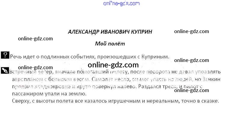 Готовые домашние задания по Литературе за 5 класс Рабочая тетрадь Курдюмова Вертикаль 2017 - Часть 2. Темы Александр Иванович Куприн Мой полёт