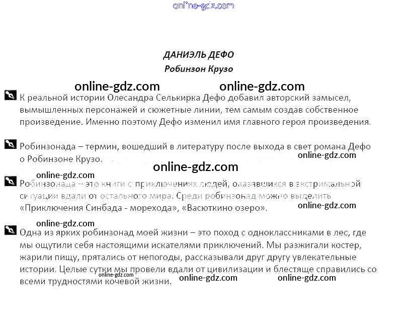 Готовые домашние задания по Литературе за 5 класс Рабочая тетрадь Курдюмова Вертикаль 2017 - Часть 2. Темы Даниэль Дефо Робинзон Крузо
