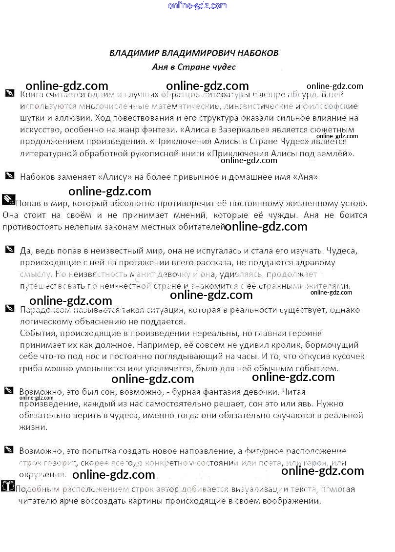 Готовые домашние задания по Литературе за 5 класс Рабочая тетрадь Курдюмова Вертикаль 2017 - Часть 2. Темы Владимир Владимирович Набоков. Аня в Стране чудес